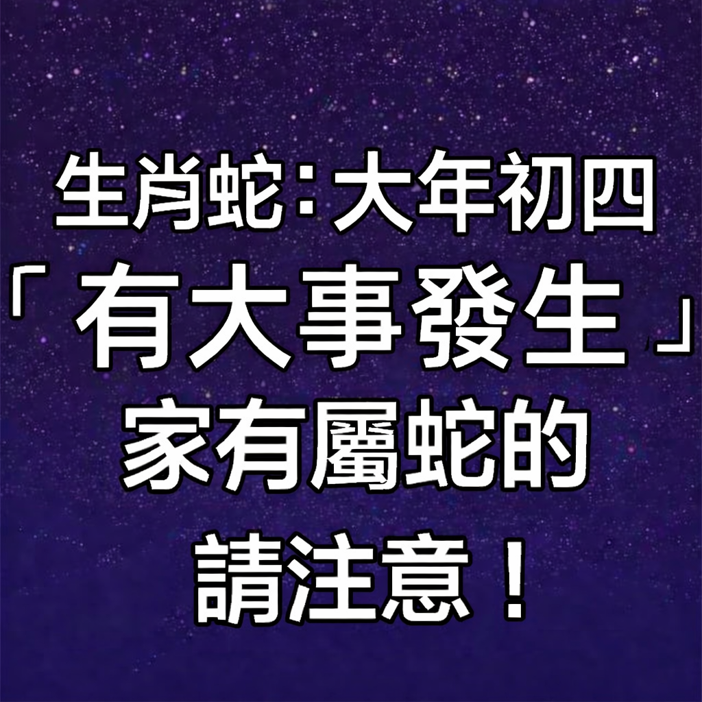 過年還沒結束,屬蛇的朋友先別太放鬆!命理圈最近提醒——大年初四,對生肖蛇來說是關鍵轉折日,處理得好,