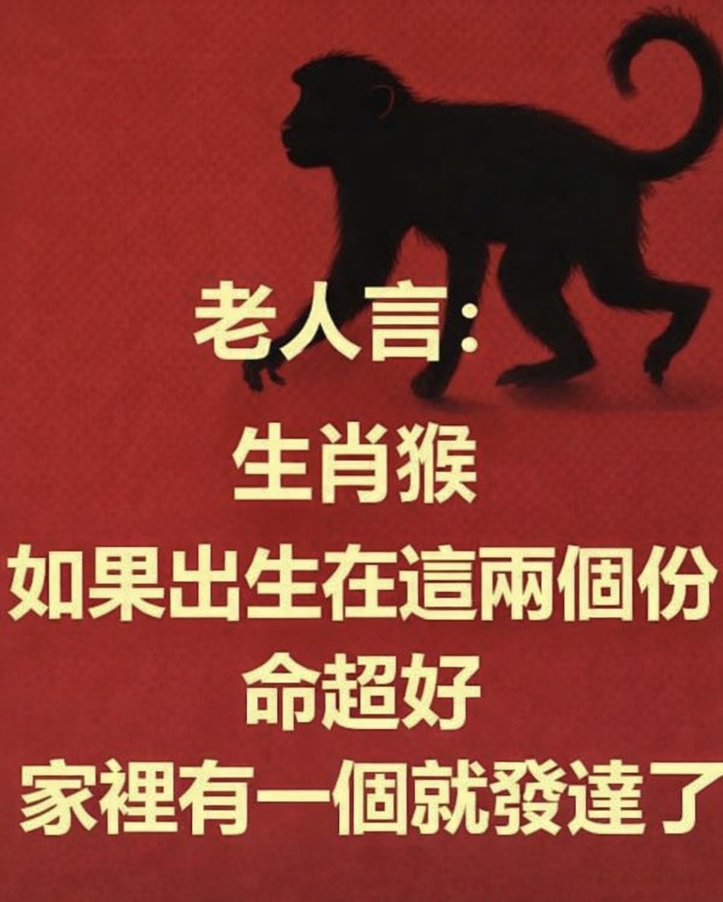 老一輩常說:「猴若生對年,一生不缺錢、不缺貴人。」在十二生肖裡,屬猴的人本來就聰明、反應快、懂得變通