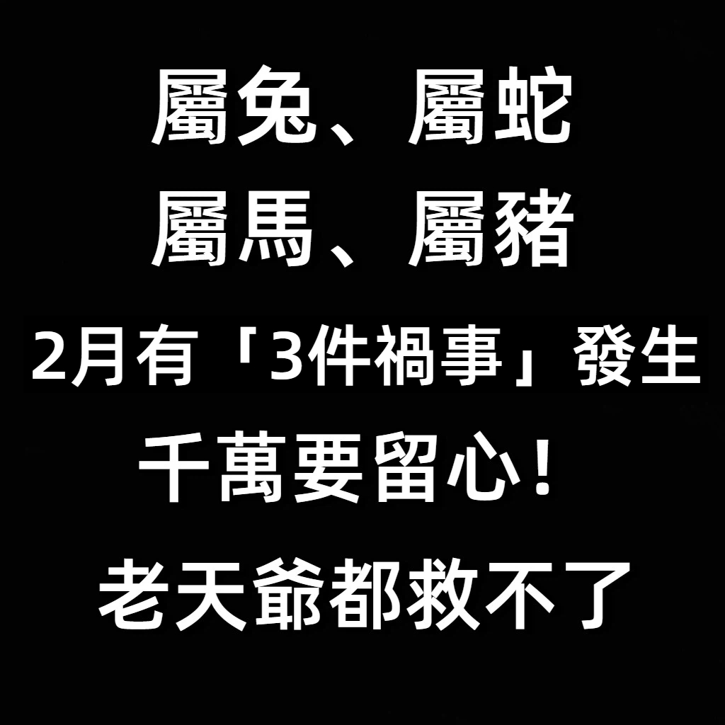 進入2月,整體氣場轉換明顯,有些生肖容易被突如其來的狀況打亂節奏。命理老師提醒,屬兔、屬蛇、屬馬、屬
