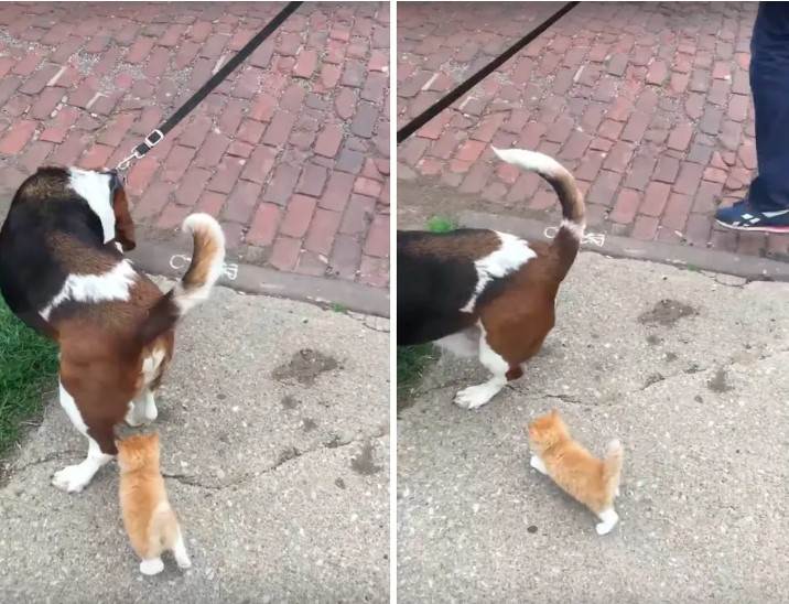 男子在遛狗的時候發現了一隻小貓。這隻無所畏懼的小貓咪決心跟著他們回家。 去年夏天,當喬恩·尼