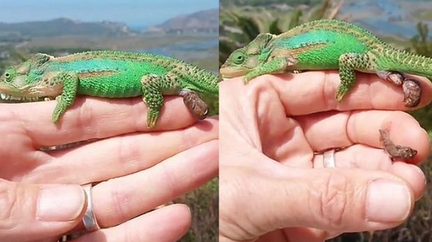 南非一名變色龍繁殖專家近日在Youtube上分享了一段影片,只見一隻變色龍停在他的手上,不到幾秒鐘的