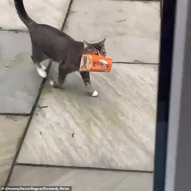 這年頭喵星人出門不是打獵、而是直接帶包貓糧回家了嗎?!住在英國南安普敦的女飼主黎哈薇(Lee Har