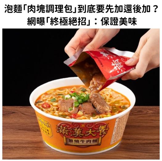 每個人吃泡麵的習慣都不太一樣,加醬料或內容物調理包的方式是否真的會影響吃的口感及風味,也各有不同看法