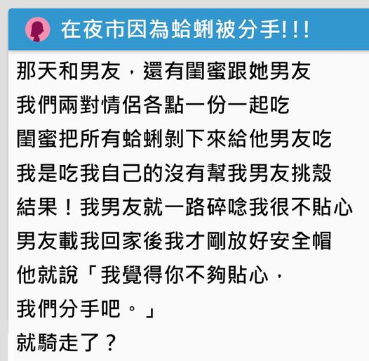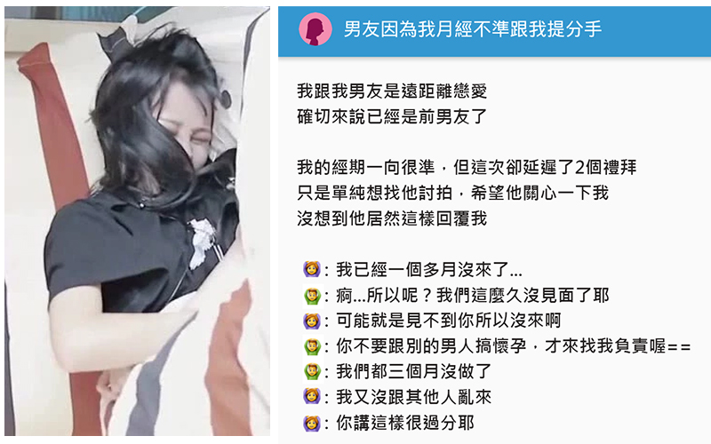 一名網友在dcard 貼出與前男友的對話…全因自己生理期延後了,找男友討拍