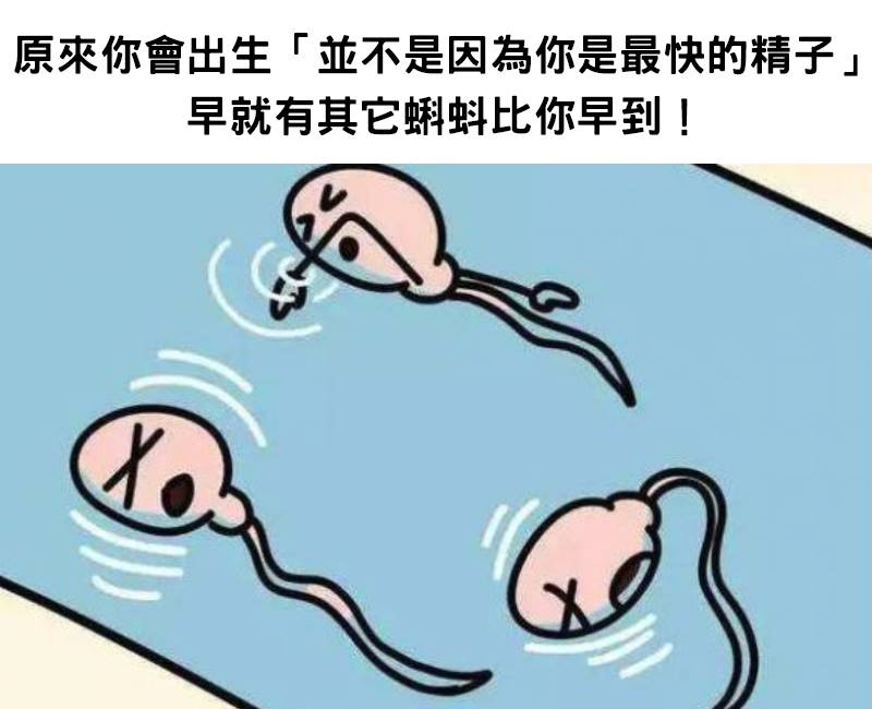 我們許多人都聽過這樣的說法:無論你現在的成就有多爛,至少當年你是幾億精 子裡跑得最快的