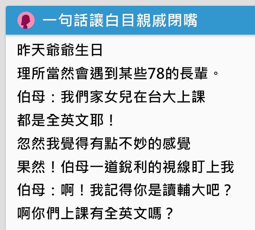 每當家族聚會,最怕的就是長輩親戚之間互相比較,一名女網友分享,日前家族替爺爺慶生,席間