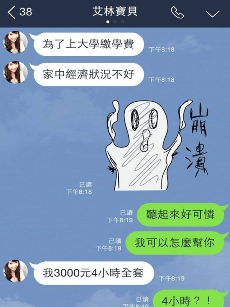 有網友在臉書社團公開男友和陌生女子的對話: 原本誤以為男友打算找妹子喝茶摸摸̷