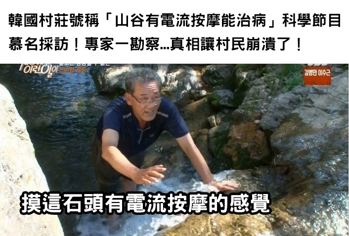 韓國一檔科學探索節目《世界上竟然有這樣的事》節目組,聽說一處山谷有電流按摩的功效,於是