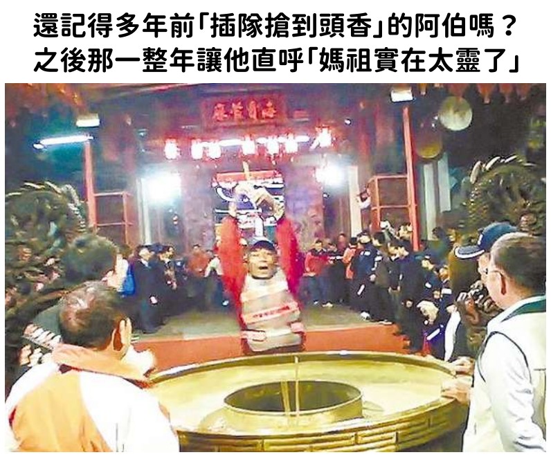 每年過年,總有許多信眾摩拳擦掌、手刀奔馳,就希望能「插頭香」以獲得神明一整年的保佑。