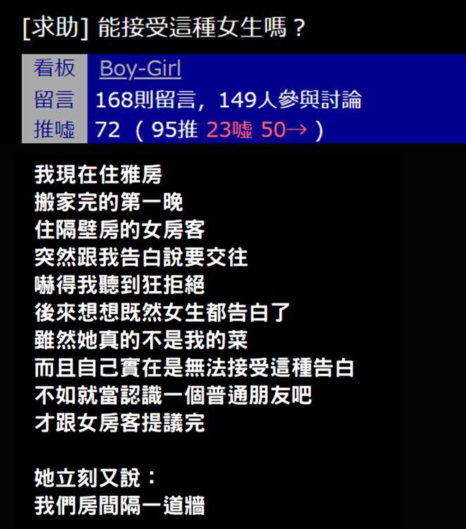 在外面租屋最怕的就是碰到不好的鄰居,不過如果是喜歡你的鄰居,你真的能夠接受嗎?有位網友表示自己剛搬到