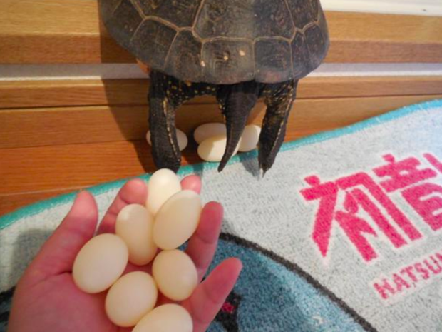 日本推主narupajin養了一隻母的寵物龜,某天他下班回家時發現烏龜趴在洗澡間的跨階上一動也不動,
