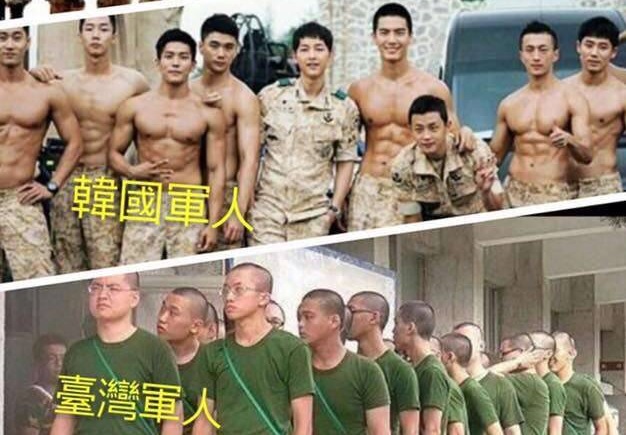 熱播的韓劇《太陽的後裔》以軍人做為背景,網路上也出現了一張「各國軍人的比較圖」,只見不管中國、美國或