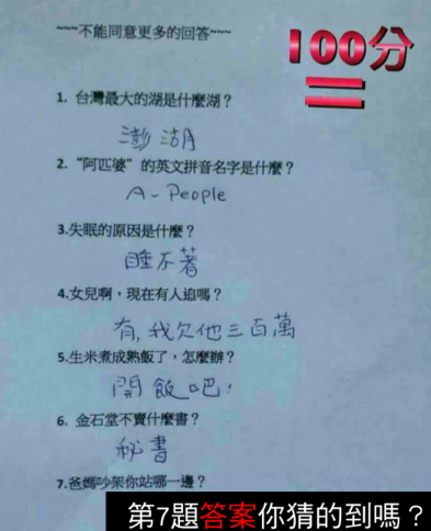 第7題:「爸媽吵架你站在哪一邊?」這答案有前途! . . . . . . . . . . . . 延