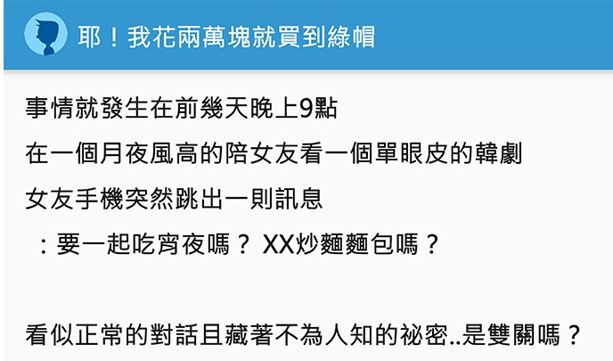 發現有人傳訊女友「要一起吃炒麵麵包嗎?」才發現被女友和兄弟聯手戴了綠帽好幾年… 事情就