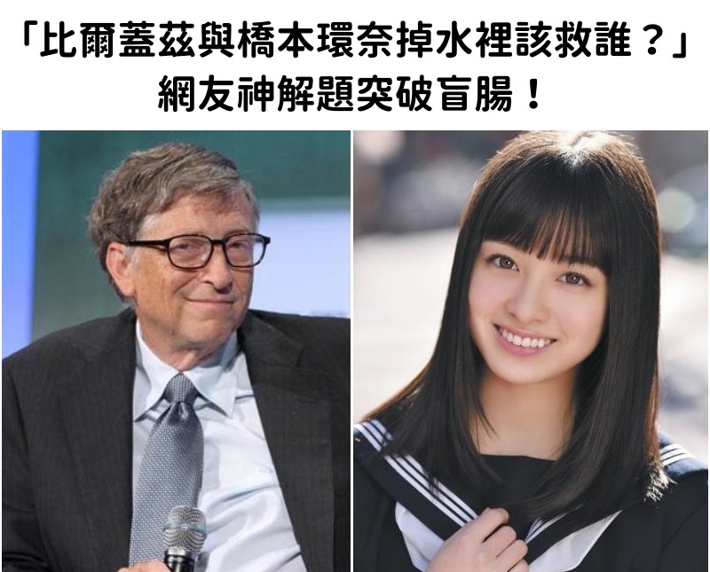 圖片翻攝/2ch 最近在2ch上有網友分享一個選擇題: 『如果比爾蓋茲與橋本環奈同時掉進水裡,你要救