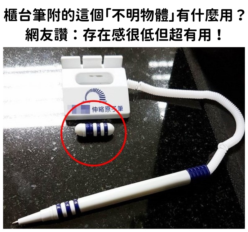 大家好啊!話說大家去郵局、銀行時,桌上常會看到有隻"伸縮筆"吧? 但最近有網友提到一個他納悶很久的問