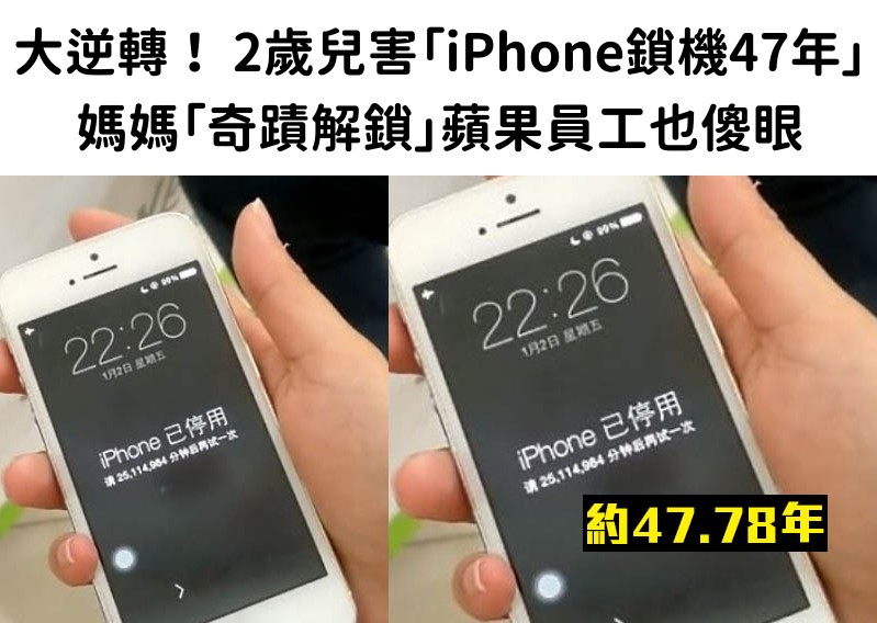 上海有一名陸姓女子的iPhone因為被只有兩歲半的兒子連續輸入錯誤的密碼,慘被鎖機25114980分