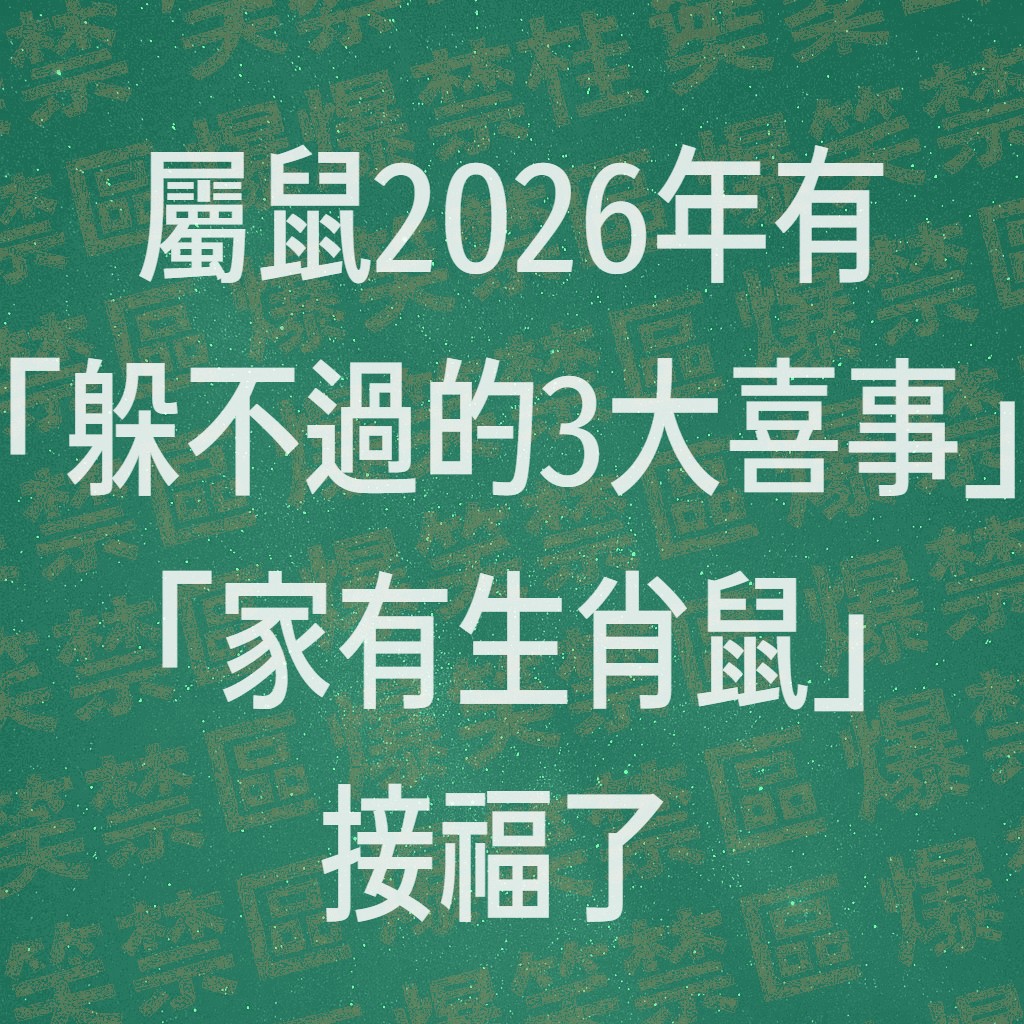 🔥 屬鼠人 2026 年「躲不過」的三大喜事: 🏆 第一喜:【天降橫財,財庫大開】 驚喜解析: 20
