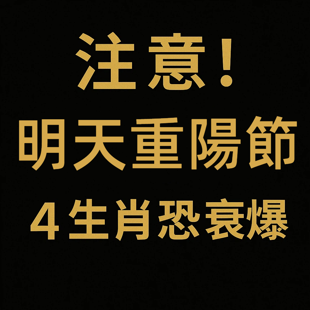 重陽節(農曆九月初九)又叫「九九重陽」,是陽氣最旺的日子,但陽過盛也容易「氣場衝撞」!有些生肖這幾天磁場特別不穩,若太鋒芒畢露、做事太急,恐怕會讓好運轉成壞運,一不小心「衰到爆」!快來看看你有沒有上榜👇