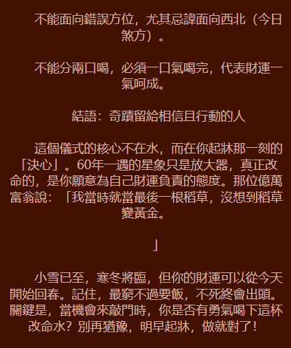 建議: 您的隨性是優點,但有時可能讓您錯失需要主動爭取的機會。在享受生活的同時,偶爾也需要為自己的未來設定一些堅實的「框架」或目標。