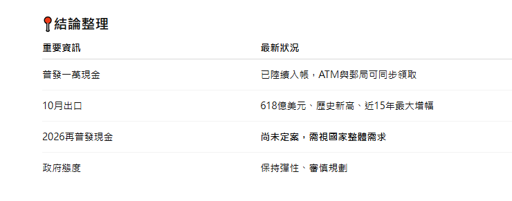 10月出口狂飆創歷史新高 2026再普發有機會嗎?行政院長最新回應