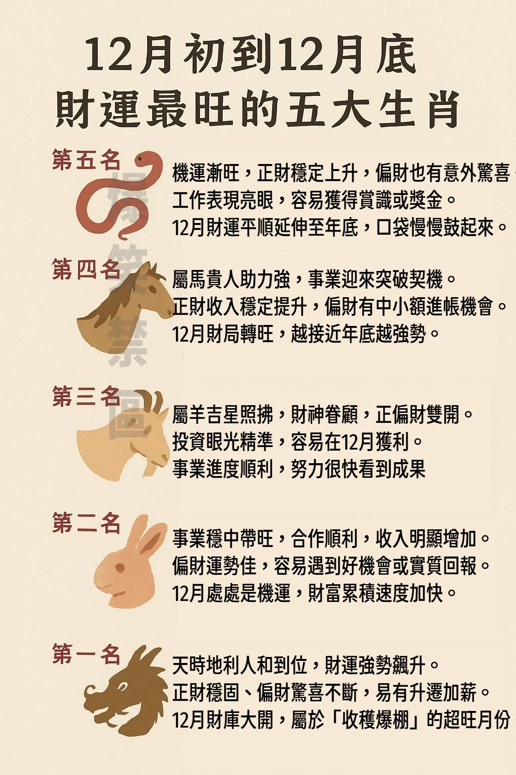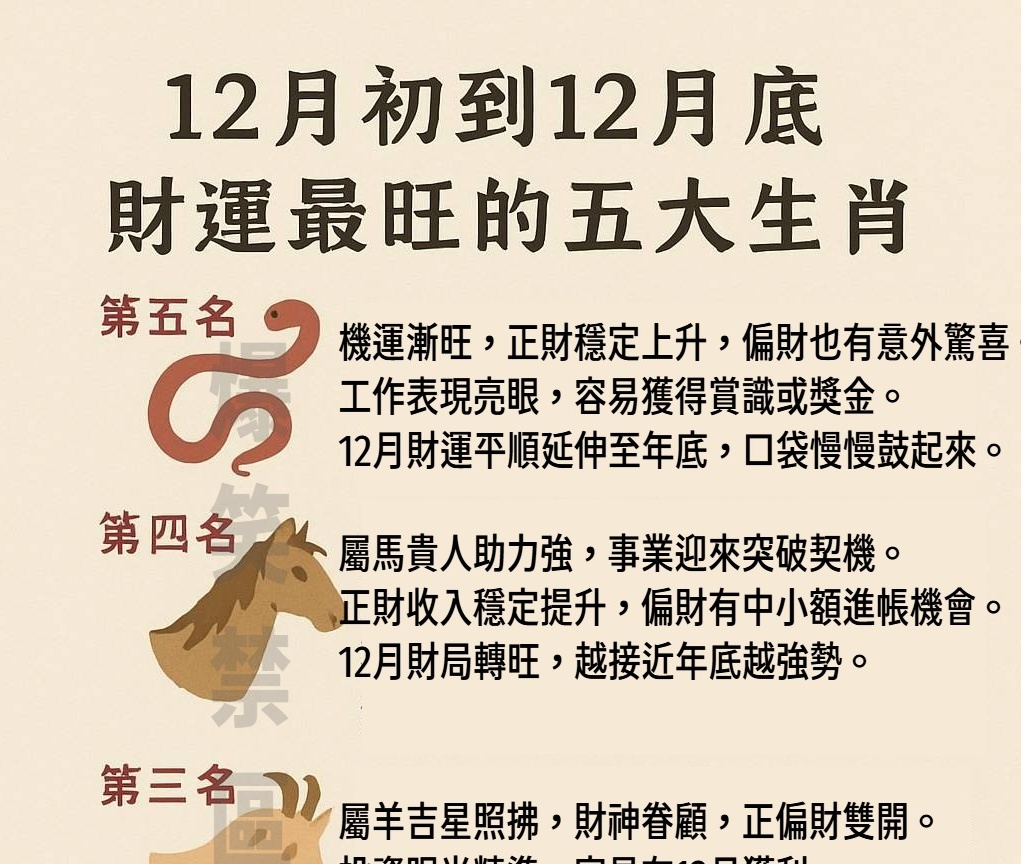 12月財局轉旺,財運源源不絕,越接近年底越強勢。