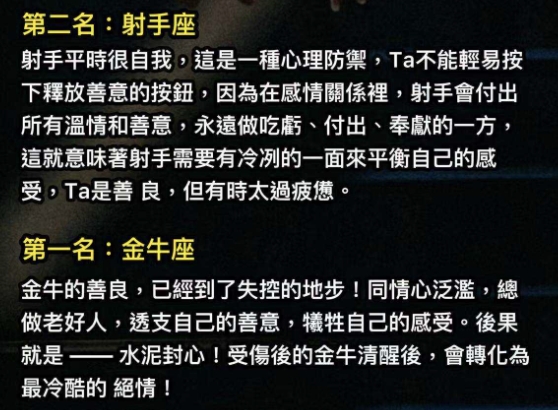 但是,你只是喜歡各種各樣的浪漫愛情故事,對於愛情你絕不冒險,而會非常理智、冷靜地應付。