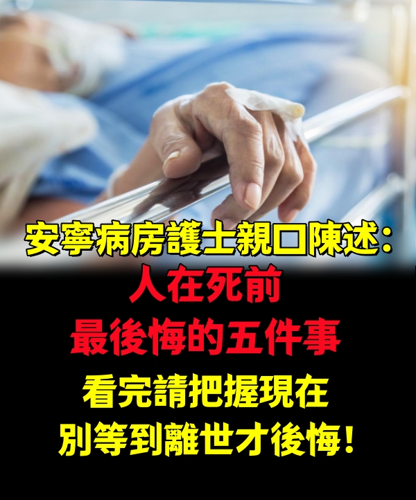 他們只希望我可以傳遞他們死前最終的心願,于是我記下他們死前最後悔的五件事,想告訴你們,也再三提醒我自己,人生不能重來,也無法倒帶,所以更要隨時隨地提醒自己「生命中最重要的事情」到底是什麼?