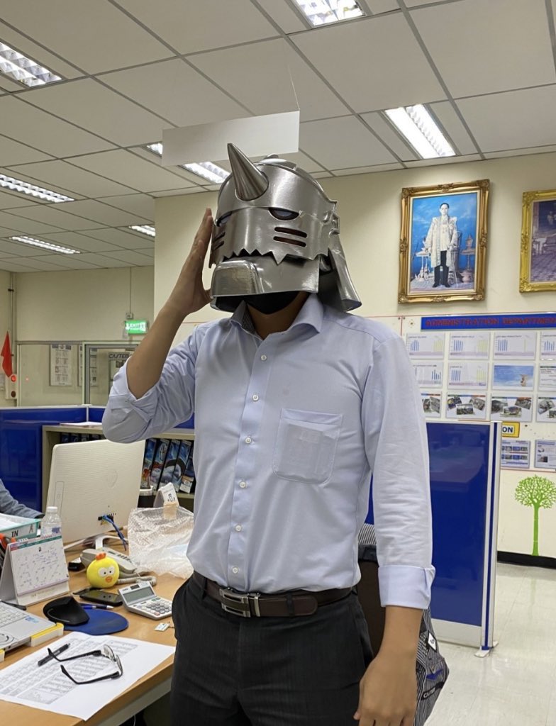 此外,IRON FACTORY IKEDA 也曾推出以動畫《鋼之鍊金術師》角色 阿爾馮斯 為靈感打造的鋼製頭盔,重量高達 11 公斤,同樣銷往台灣與香港。廠方強調該產品「真材實料」,並提醒消費者配戴時需特別注意重量。