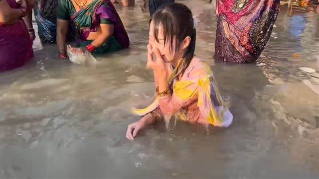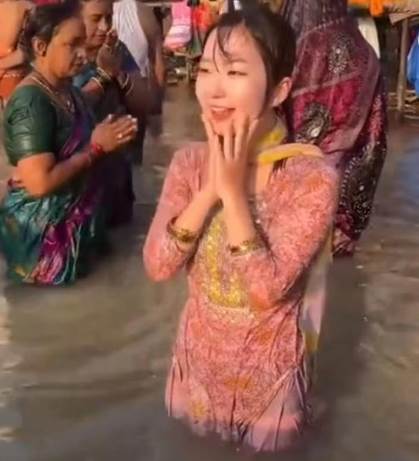 要知道,恒河雖然被視為聖河,但卻以污染嚴重而聞名,水中充斥著病毒和細菌。然而,這一切似乎沒有讓惠子猶豫分毫。