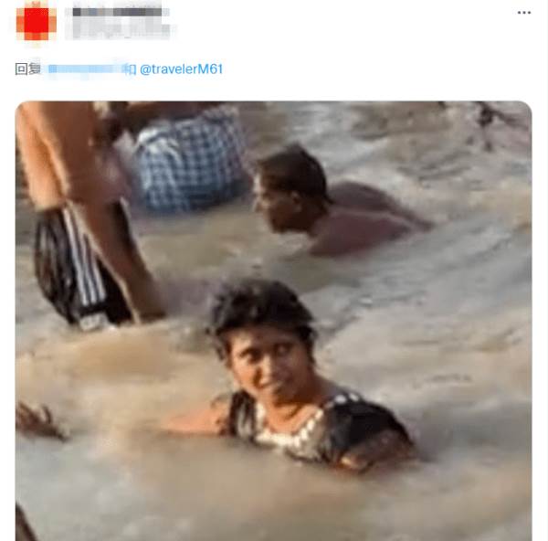 更有網友調侃道:「你看到視訊里旁邊的印度婦女了嗎?她一直盯著你看,心里估計都在嘀咕,‘這家伙居然真敢下去!’」