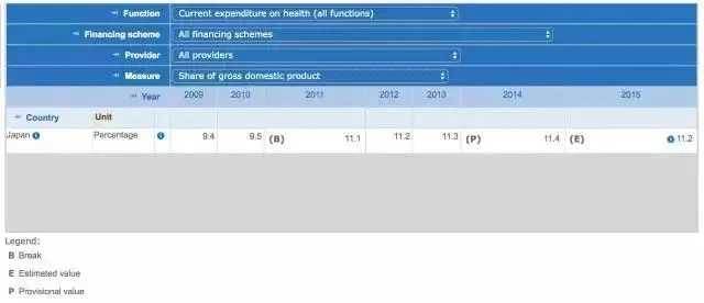 OECD醫療費用原始資料庫中,日本2009年~2015年醫療費用占GDP比例作為長壽大國的日本,一直為本國的長壽國民而深感自豪,但如果這些長壽國民的長壽質量很不理想,比如說雖然長壽,但卻疾病纏身、病病歪歪,甚至只能終日躺在床上,缺乏醫療護理就無法自活,如果都是這樣的一種「長壽」狀況,不僅對高齡者自己是一種折磨,也會給未來日本的醫療費負擔帶來無法承受的超載負荷。日本政府所想到的一個解決未來醫療費負擔的最基本、其實也是最重要的方法,就是讓國民們保持健康、提高長壽品質。出于這樣的目的,日本政府才推出各種政策鼓勵全民減肥,將體重保持在一個健康的范圍,以預防心臟病、高血壓等伴生疾病,減少醫療開支。