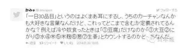一天吃30種食材,這是日本厚生勞動省在1985年《為了健康的飲食生活指南》中提倡的飲食目標。此後,30種食材這個概念在日本傳播得非常廣,被很多主婦當作一個準則來安排一天的飲食生活。通常一個日本家庭的飲食結構是:生魚片或烤魚、煮魚,再加上冷豆腐、煮菜這樣的模式,醬油極受重視,一般的搭配方式是米飯配大醬湯和腌菜,再加上小菜。