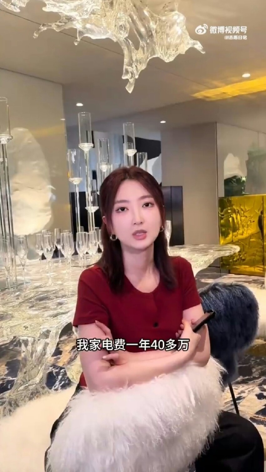 大葉子指出,除了空調系統外,其餘還包括:一台3米多的嘉格納冰箱,兩台冷藏、一台冷凍,光這三台冰箱的電費,每年多達人民幣40萬元 (約新台幣164萬元) ,就超過絕大多數家庭一年的電費,「設備剛開機的那段時間,電力局還專門給我們打電話,詢問『為什麼電費高的這麼離譜?』」稱自己直播帶貨,賺來的錢都拿來繳電費。炫富的行為引來網友不滿,紛紛檢舉大葉子的抖音帳號,目前帳號遭到禁言。