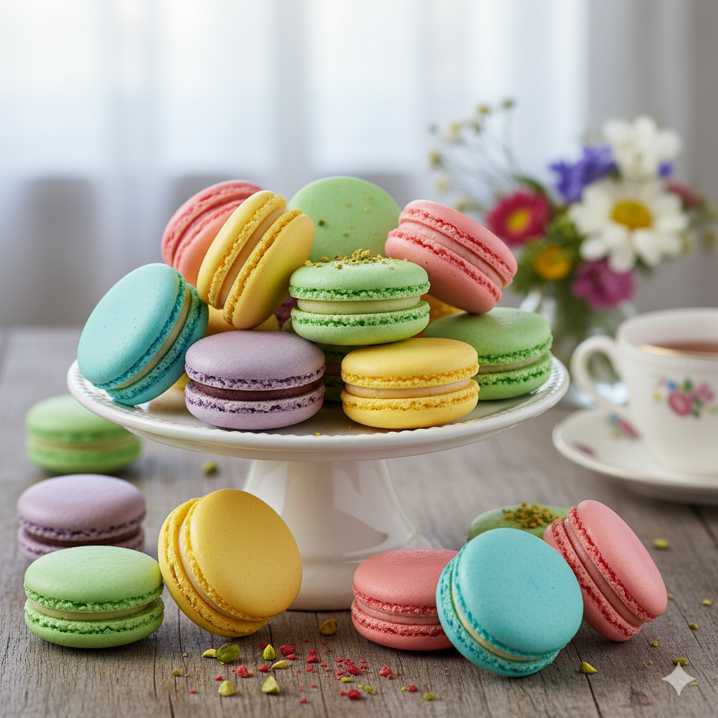 C. 繽紛法式馬卡龍(色彩斑斕,精緻且層次豐富)