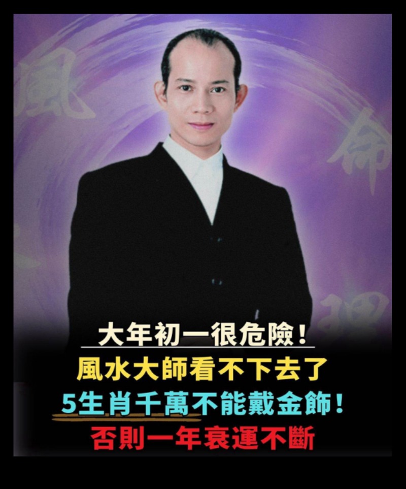 大年初一是一年的開端,象徵著全新氣場的建立。雖然穿金戴銀看似喜氣,但在命理風水學中,「金」代表強烈的剛性磁場,並非每個人都能駕馭。風水大師特別點名 5 個生肖,在大年初一這天應避免配戴金飾,以免磁場相沖,導致整年的運勢受阻。