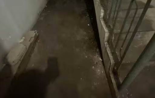 他開始在自家房子裡仔細尋找聲音的來源。 當他走到樓梯下方的角落時,發現聲音似乎是從這裡傳出來的。