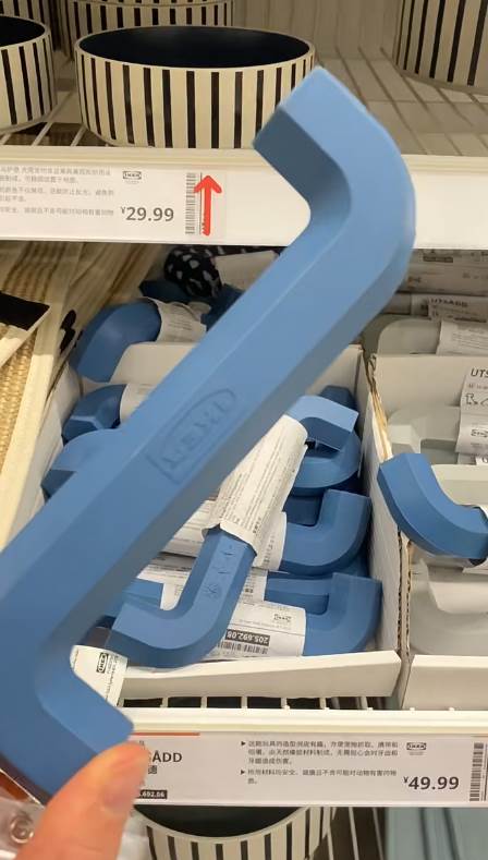 先前也有網友在IKEA看到一個很困惑的產品,看起來像是一小段兩端彎曲、藍藍的水管,但仔細看卻又是實心的,真的讓人想不透到底是拿來做什麼用的!其實這是給狗狗咬著玩的寵物玩具,因為是由天然橡膠製成,所以對狗狗無害,只是不知道為什麼要做成內六角扳手的形狀XD目前這個玩具台灣並沒有販賣,中國官網的話單個售價是49.99人民幣(約新台幣221元)。