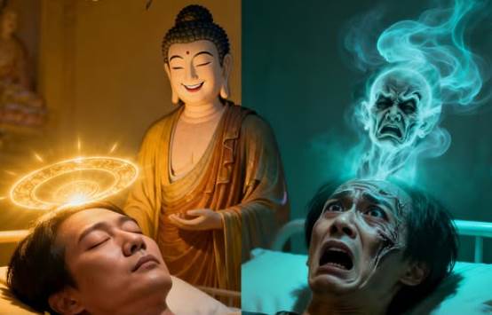 舉個真實的例子吧。一位老居士陳太太,一輩子吃齋念佛、平日功課從不落,甚至認為自己一定會被阿彌陀佛接引。可這位陳太太在臨終前,最深愛的兒子從國外趕回來了,看著兒子痛哭,她心裡再也放不下了,嘴裡喊著兒子的名字、眼睜睜盯著門,最後甚至連佛號都不念了。結果呢?她的神識沒辦法隨善念走,而是被對兒子的牽掛所困,變成了癡守于兒子的幻影,再求佛號已是奢望。