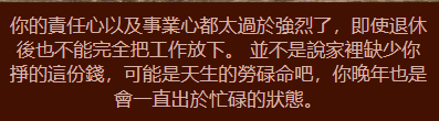 你是一個 務實而熱情 的人。你欣賞簡單、直接,不喜歡複雜矯飾。你重視實用性和效率,但同時也充滿了活力與對生活的熱愛。你待人真誠,樂於分享,就像漢堡一樣,雖然是日常食物,卻能帶給人們最純粹的快樂和飽足感。你的人緣很好,是朋友群中的「萬人迷」。