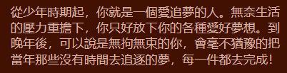 你是一個 自信而有品味 的人。你追求卓越,對生活品質有著高標準。你獨立、有主見,不隨波逐流,就像紐約客牛排一樣,以最純粹的方式展現其價值。你的個性堅定,目標明確,不懼挑戰,總能散發出一種令人信服的領袖氣質。你重視細節,品味獨到,總能在人群中脫穎而出。