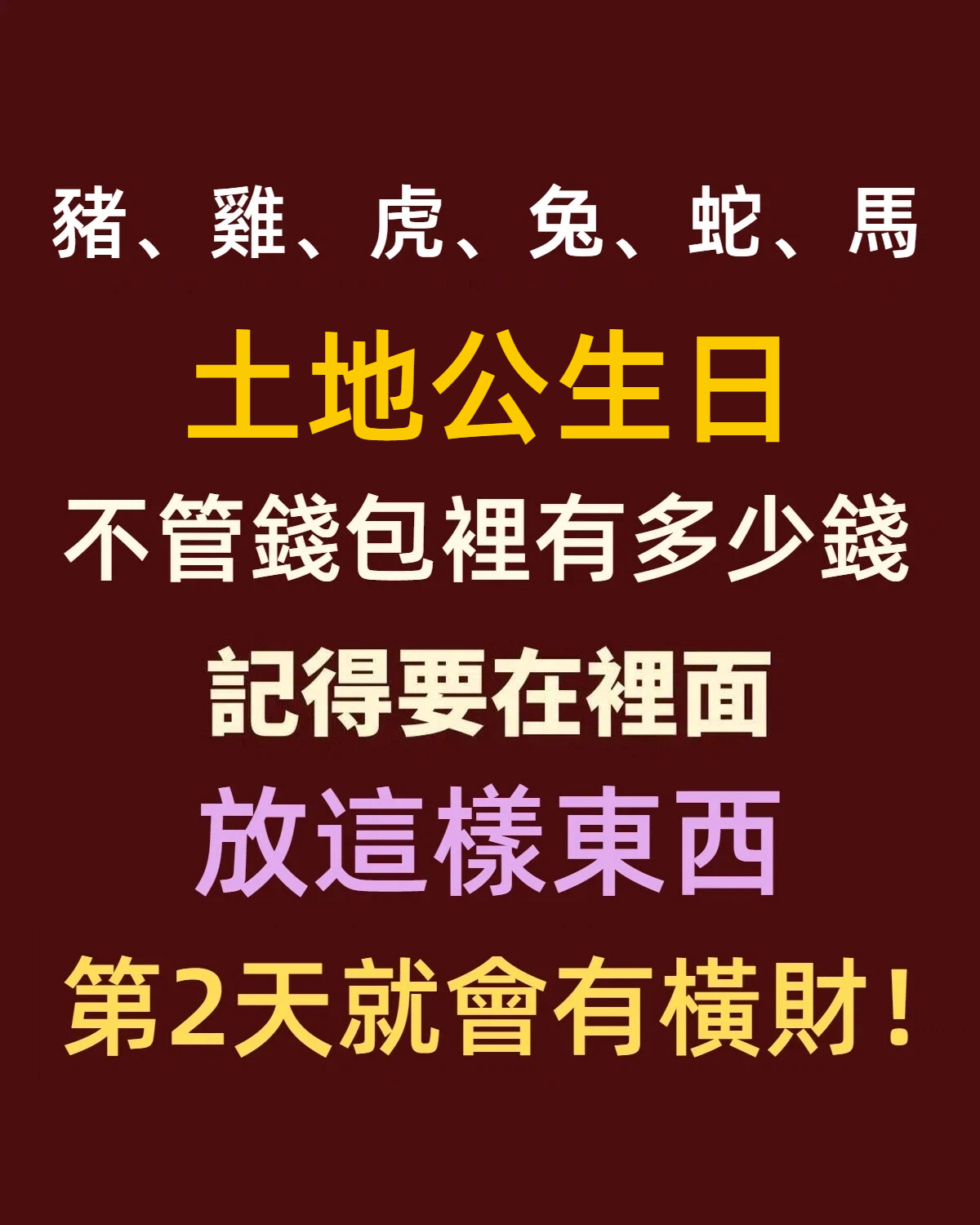 💰土地公生日必看!這6生肖要發了🔥 不管你現在錢包剩多少,記得放這1樣東西,隔天直接迎橫財! 每年土