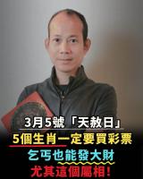 2026年3月5日,是極為罕見的「天赦日」與「驚蟄」雙吉日重疊的60年一遇大日子。在傳統民俗中,天赦