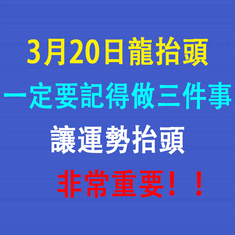 3月20日龍抬頭,記得做三件事情讓運勢抬頭 每年農曆二月初二「龍抬頭」,象徵沉睡的能量甦醒、運勢重新