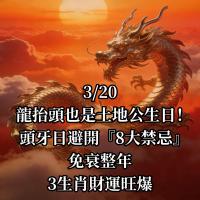 3/20 龍抬頭也是「土地公」生日!頭牙日避開8大禁忌,免衰整年,3生肖財運旺爆! 3月20日適逢農