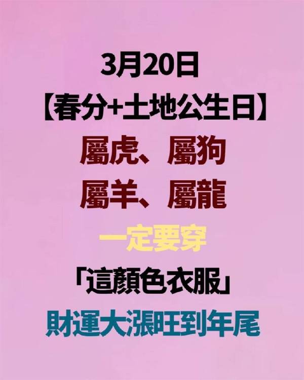 2026年3月20日春分恰逢土地公「頭牙」,屬虎、狗、羊、龍宜穿貴人色與合作色,借天地氣場提升整年運