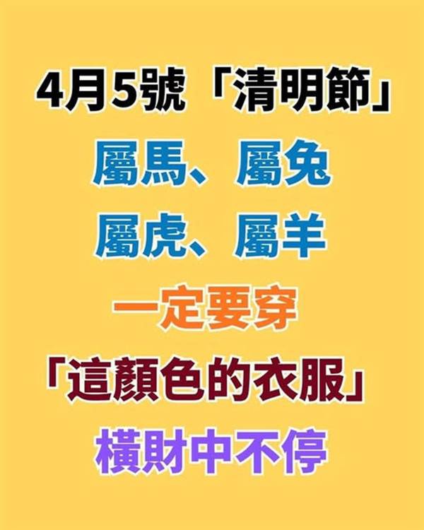 4月5號「清明節」到了!屬馬、屬兔、屬虎、屬羊一定要穿「這顏色的衣服」,橫財中不停 清明節不只是掃墓