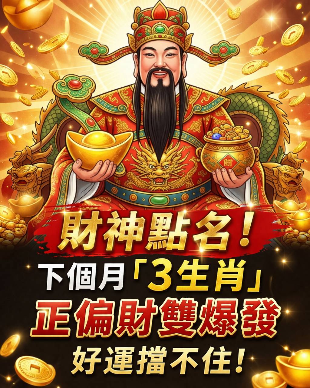 財神點名「正偏財雙爆發」三大生肖 🏆 Top 1:屬【龍】—— 本命覺醒,地靈財發(財運之王!) 運