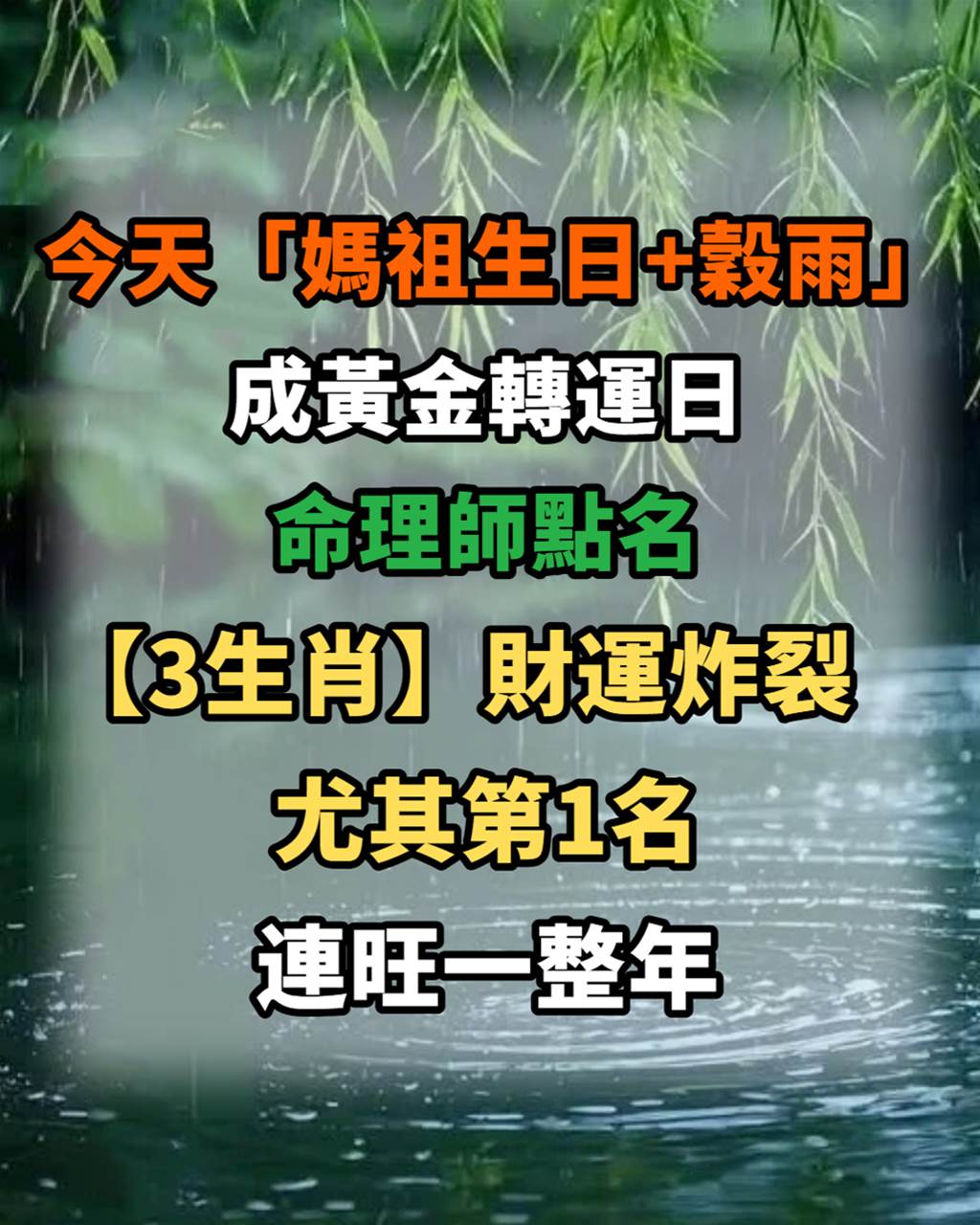 農曆三月二十三是媽祖誕辰,同時又剛好遇上節氣「穀雨」,在命理上被視為「雙重能量疊加」的黃金轉運點。媽